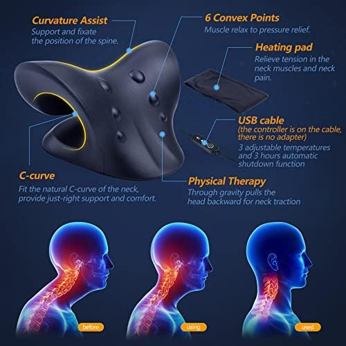 ✔ 【 Heated Neck Cervical Traction Device Pillow 】 When you choose to use USB heating neck traction pillow, combined with graphene heating pad, help relax tight muscles in the neck and jaw, release tension and pressure, and help blood circulation. The USB heating neck traction pillow has 3 adjustable temperatures and 3 hours automatic shutdown function, provide you with comfortable temperature. Just plug the USB cable into the power bank, PC or USB adapter (5V=1A charger/DC USB input).