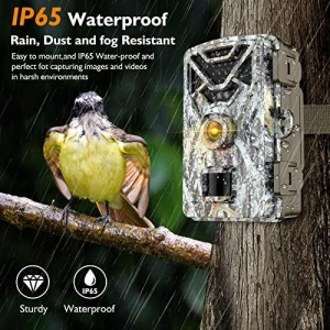 【IP65 WATERPROOF & MULTIFUNCTIONAL】This hunting & trail camera has plastic case and silicone sealing ring.It reaches the waterproof level of IP65,which is extremely suitable for field shooting.Besides,this wildlife camera can also be used as home security surveillance, surveillance warehouses, farm guards. Package includes 32GB Micro SD card and 8 batteries. This trail & game camera is equipped with everything you need.