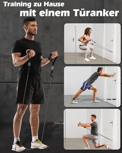 [Complete Workout Kit] – Our fitness bands set includes 💪 6 durable tube resistance bands, 2 ankle straps, 2 handles, 1 door anchor, 1 storage bag, and a training guide poster. The widened handles provide a better grip, and the stainless steel carabiner clips on the workout bands ensure enhanced durability.